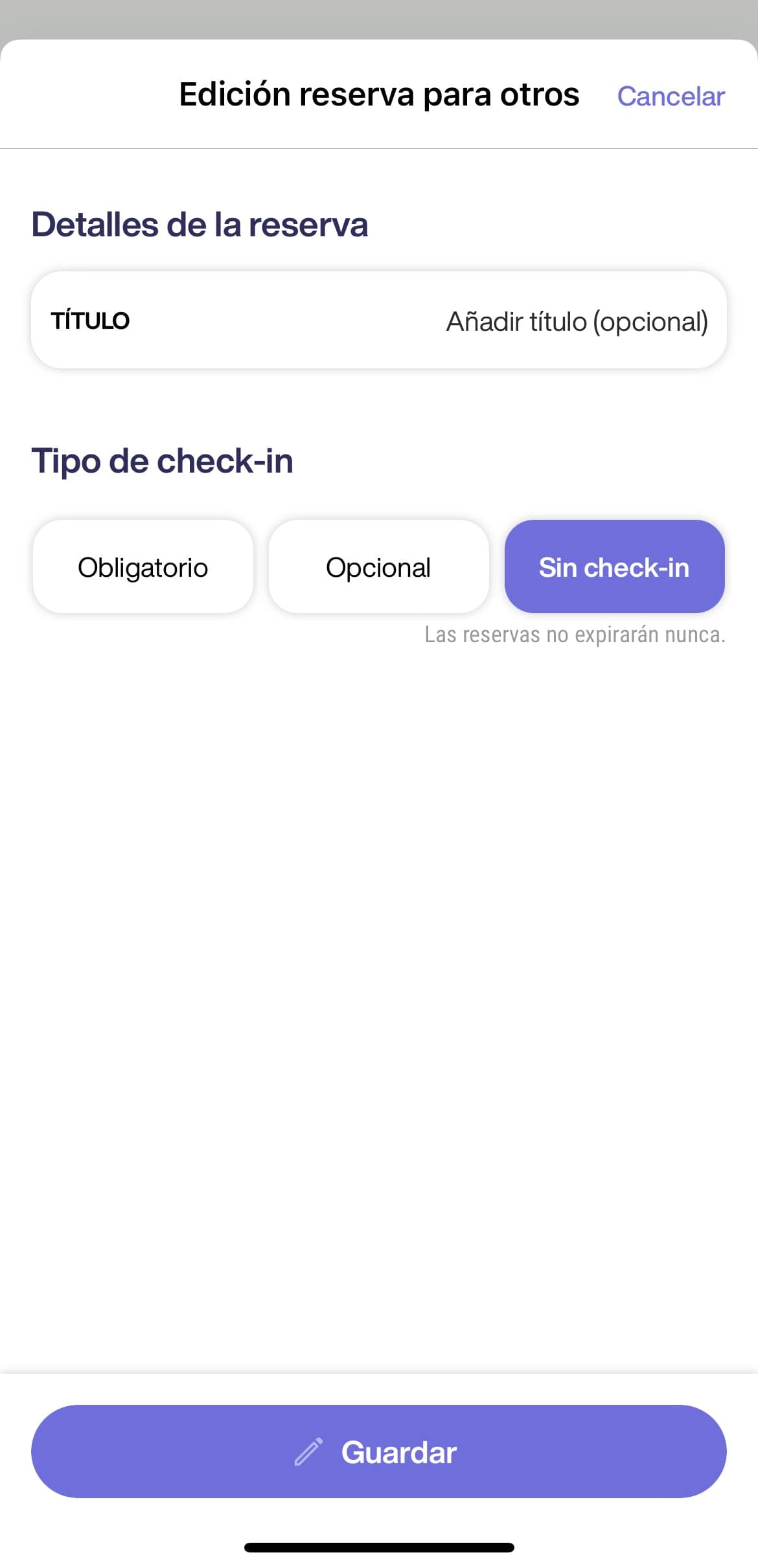 🚨 Si existen repeticiones en la reserva y esta ha comenzado, la edición en el tipo de check-in se aplicará a partir de la próxima repetición.