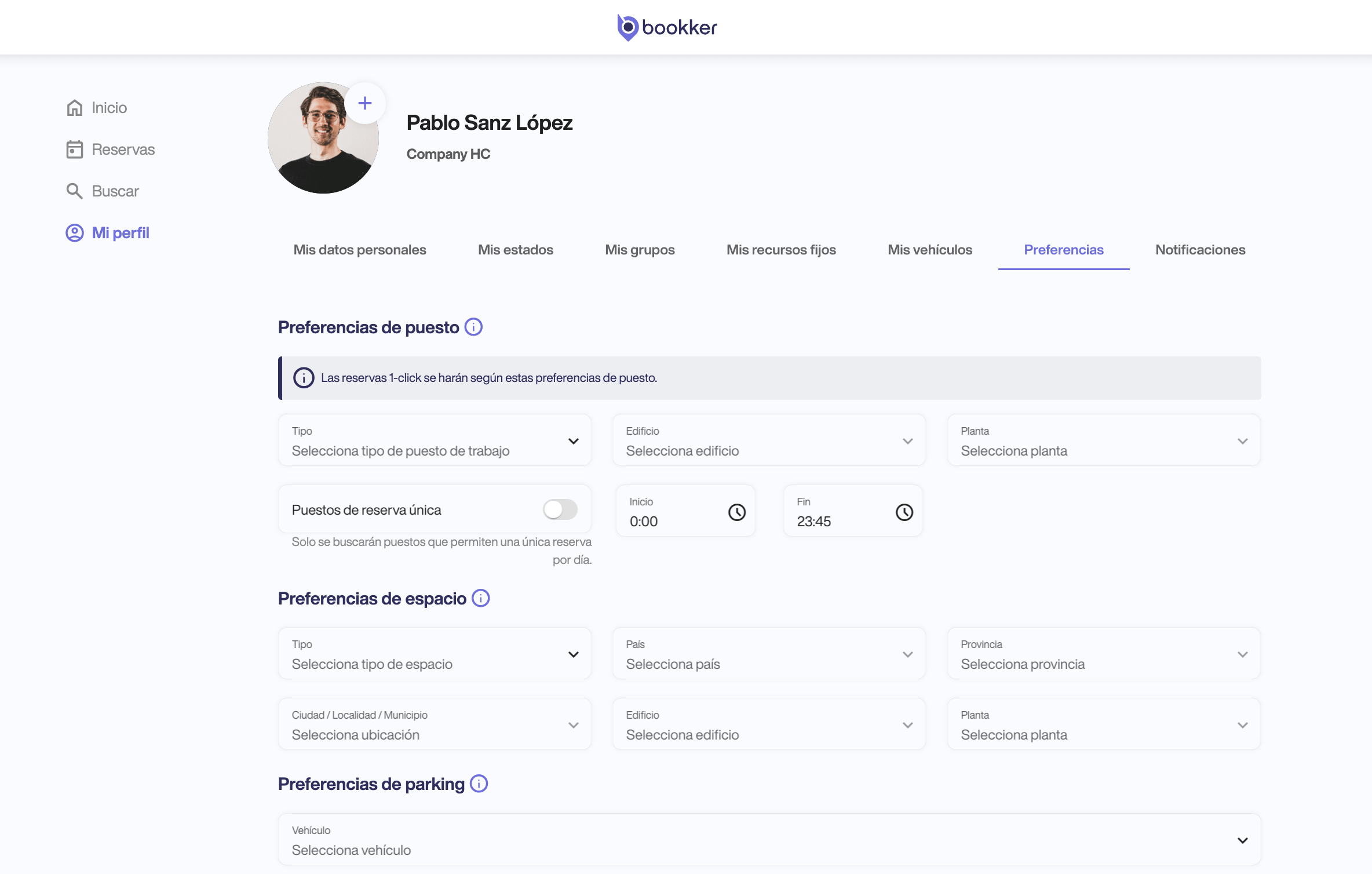 ☝🏽 La opción de Reserva 1-click disponible desde los accesos rápidos de la home creará una reserva de puesto inmediata atendiendo a las preferencias aquí configuradas.