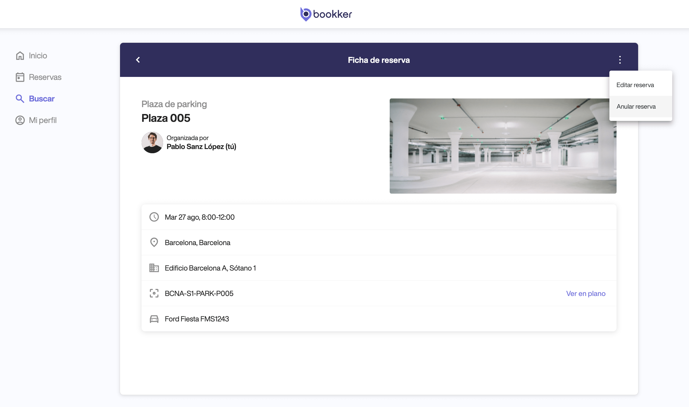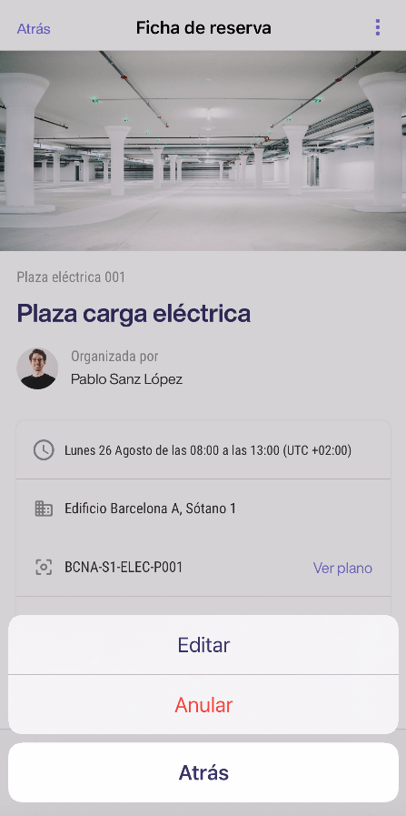 Anular una reserva de parking desde la app.
