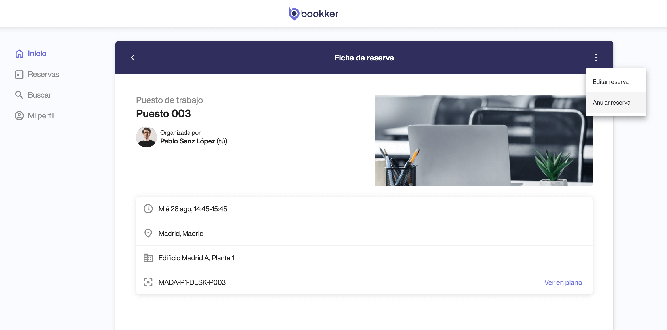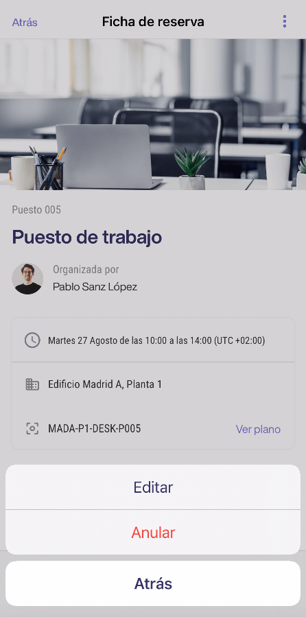 Anular una reserva de puesto de trabajo desde la app.